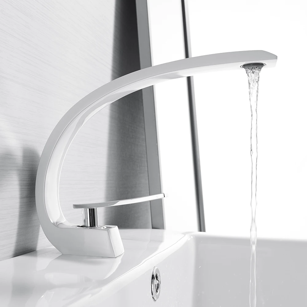 Robinets de lavabo moderne mitigeur lavabo en laiton Torneira trou de poignée unique robinets de cascade blanche LH-16990
