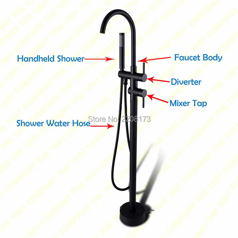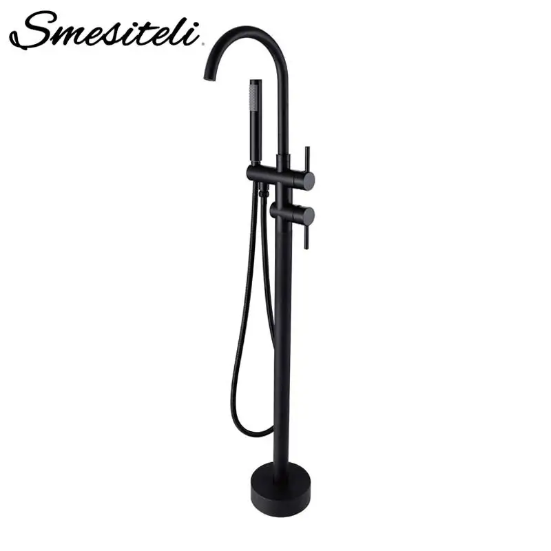 Smesiteli bec de bain indépendant noir mat Style classique bec de douche déviateur de douche montage sur le sol robinets mélangeurs de remplissage de baignoire.