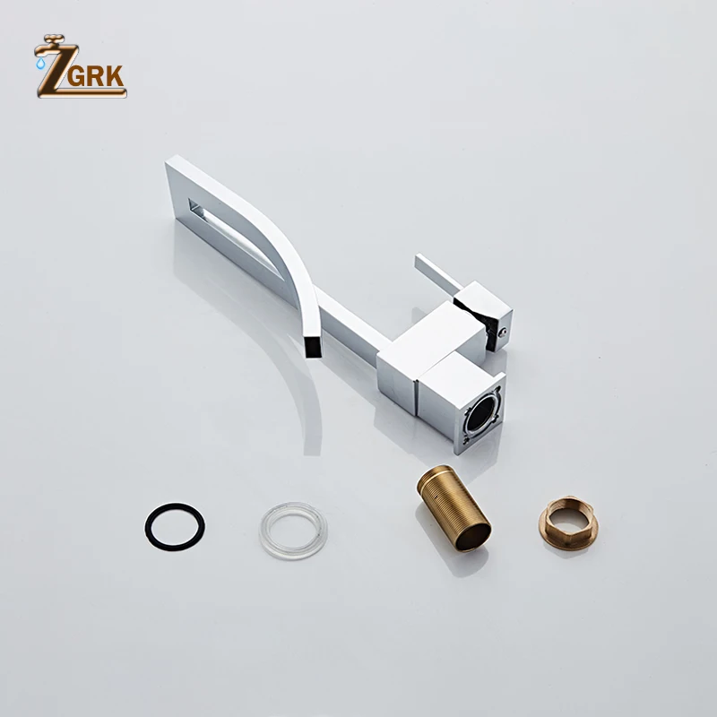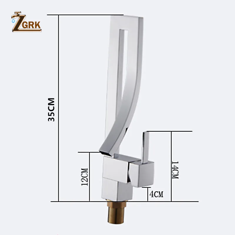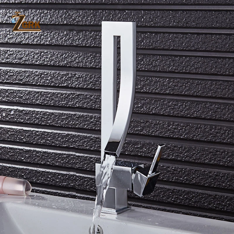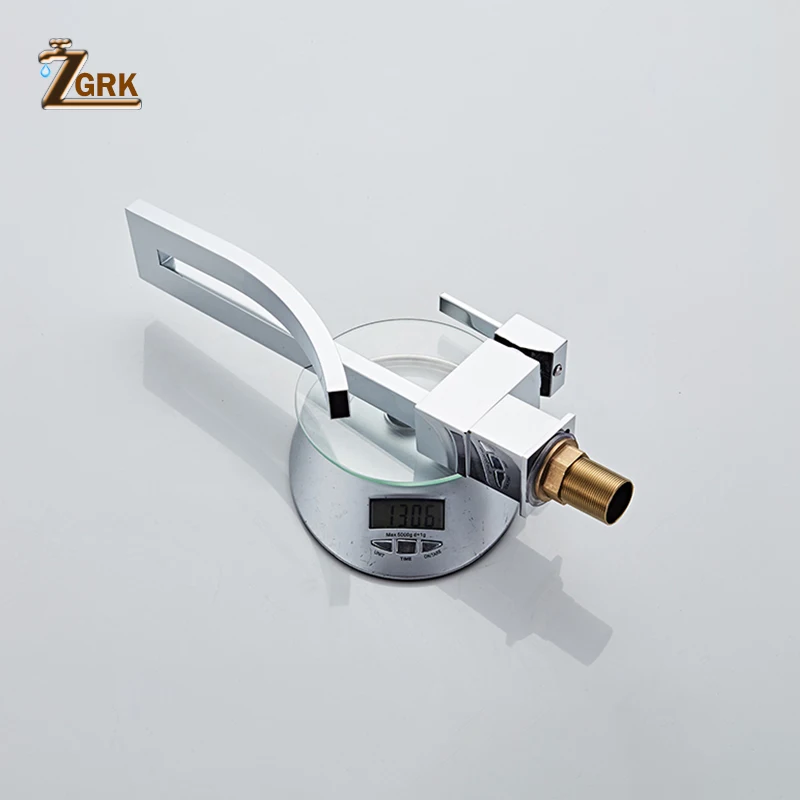 ZGRK robinet de lavabo mitigeur chaud et froid monté sur le pont en laiton chromé de tête carrée de salle de bains.