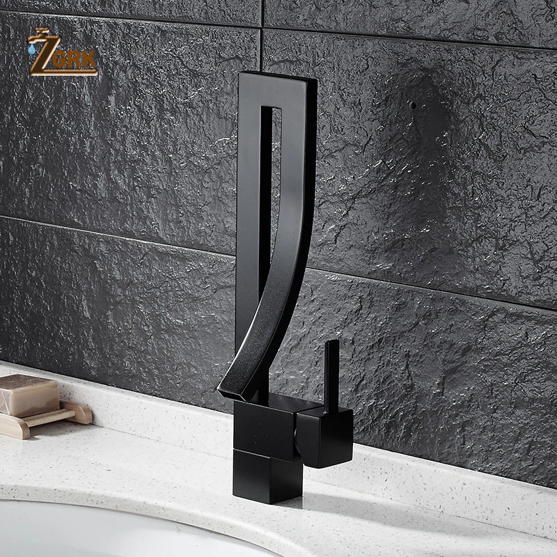ZGRK robinet de lavabo mitigeur chaud et froid monté sur le pont en laiton chromé de tête carrée de salle de bains